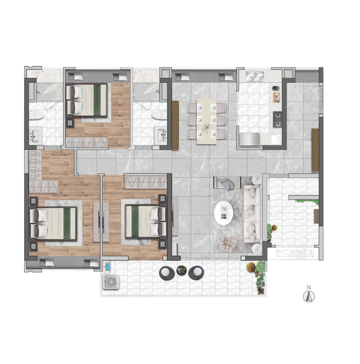 本次示范区展示了约140㎡的3+1房户型,该户型南北通透,动静分区,餐客厅一体,充分考虑了居住舒适度和家庭成员间的互动需求。特别值得一提的是,约7.5米的景观阳台,让窗外的都市繁华夜景尽收眼底,增添了生活的乐趣和品质感。