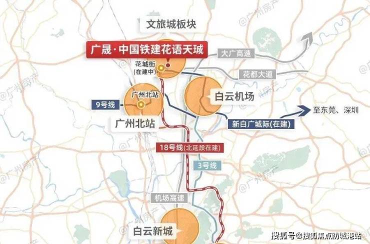 广晟·中国铁建|花语天珹位于花都中轴CBD优质住宅区,周边汇聚了商业写字楼、购物中心、高档酒店以及市民广场、图书馆、大剧院(在建)等大型公共设施。项目距离18号线花城街站(在建中)仅约1.2KM,交通便捷性无可质疑。随着18号线北延段的建设推进,预计到2026年底建成开通后,居民可更加快速地抵达广州中心城区。