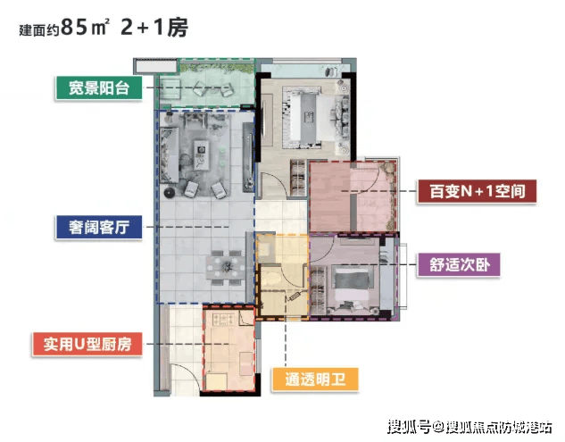 针对不同家庭需求,项目打造了多款实用户型,每一款都精准踩中购房者的需求点。建面85㎡三房一卫是入门刚需的优选,采用2+1房灵活设计,多出的空间可根据需求改造成书房或储物间,最大化利用每一寸空间,卫浴做到三分式隔离,提升使用舒适度,首付门槛友好,让预算有限的年轻人也能轻松上车科学城。