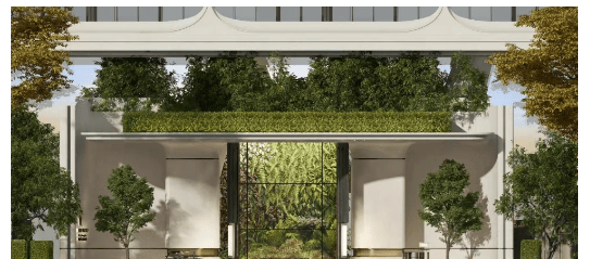 此外,项目归家门楼采用双首层抬高设计,搭配水景端景、白色弧形立柱、金色门厅天花板等元素,既彰显高级感,又寓意“步步高升”,同时提升归家仪式感,让业主每次归家都能感受到满满的尊崇感。