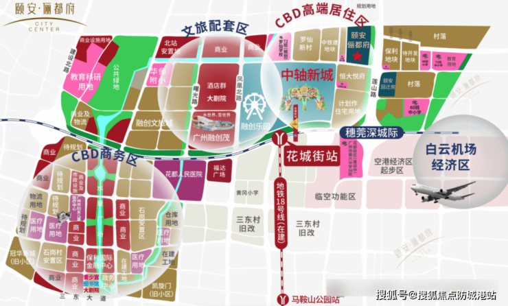 「颐安郦都府」位于花都中轴 CBD,该板块又被称为融创板块。这里以 “珠江新城” 为打造标准,未来目标是成为大湾区首个绿色金融 CBD。