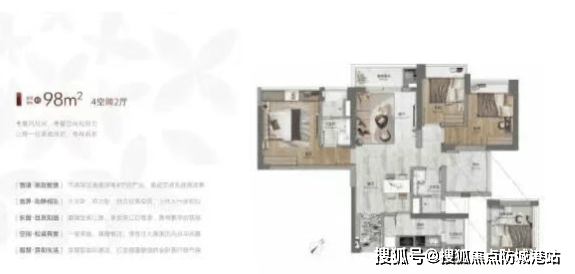 建面约98-108㎡高性价比四房:空间布局科学,功能分区合理,满足二胎家庭或三代同堂的居住升级需求;