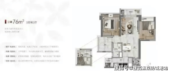 建面约76-89㎡爆款三房:小面积也能实现三房格局,部分单位更可望珠江景致,视野开阔;