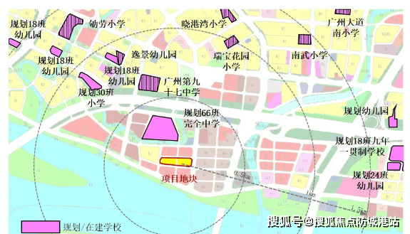项目对口海珠外国语实验中学附属第二小学(即海外二小),属宝玉直实验小学教育集团成员校,办学质量在海珠区内口碑良好。此外,地块500米范围内还规划一所66班完全中学,未来将形成从小学到高中的完整教育链条。(注:具体招生政策以教育部门当年公布为准)