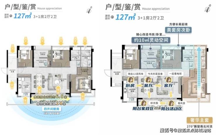 建面约127㎡3+1房2厅2卫(横厅):空间布局合理,满足大家庭的需求。