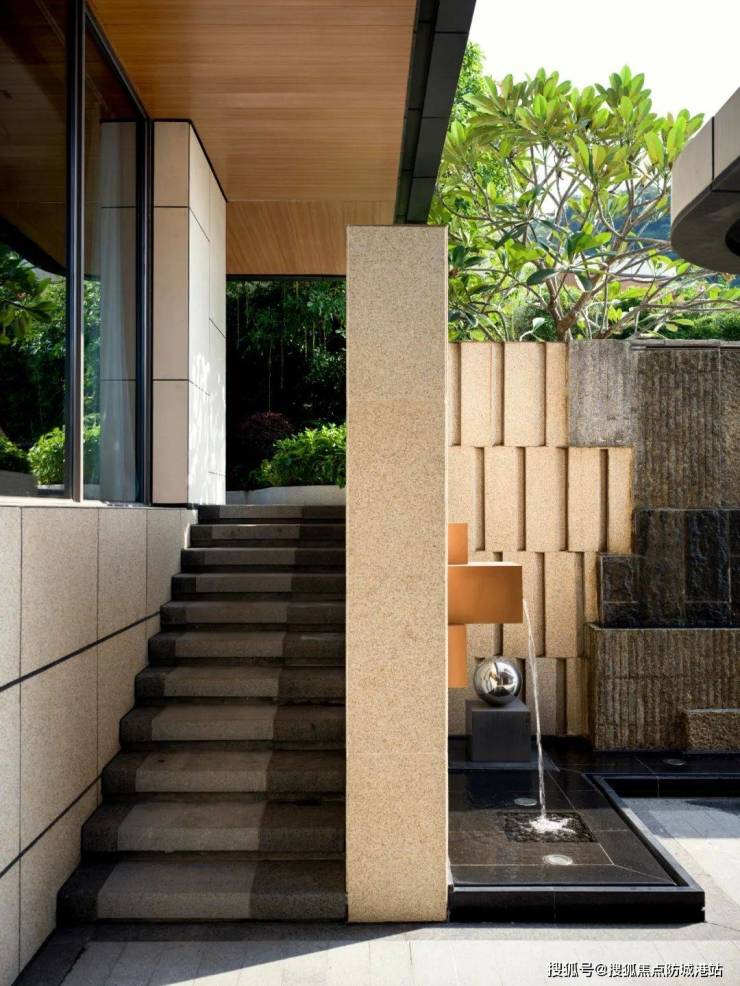 山顶公区路面复刻香港新鸿基价值百万/平的公区设计,嵌入天然大理石地面、艺术雕塑、花木水景等自然美学元素,勾勒城市与生活的平衡之美。