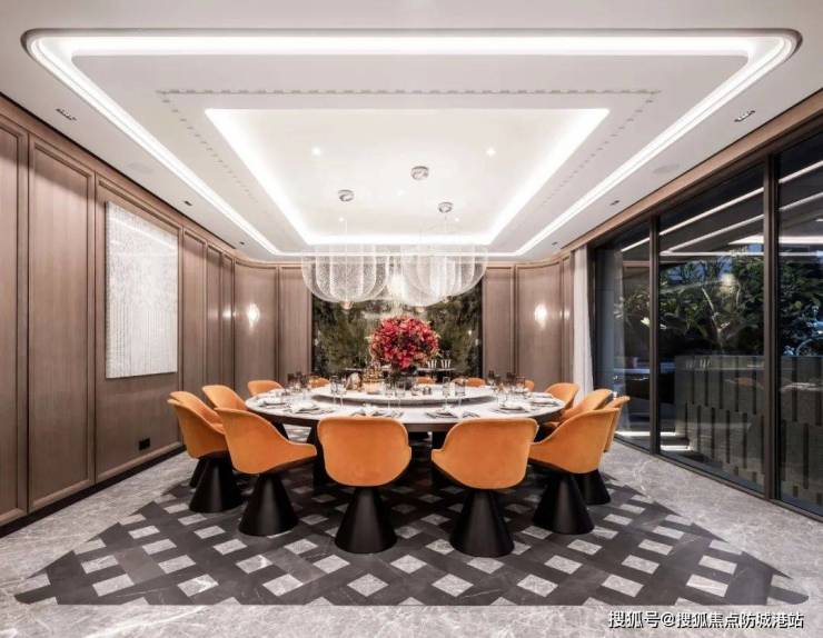 从会客厅、宴会厅、厨房等开放空间,到卧室、浴室等私密空间,采用了大面积落地玻璃设计,增强空间关联性。
