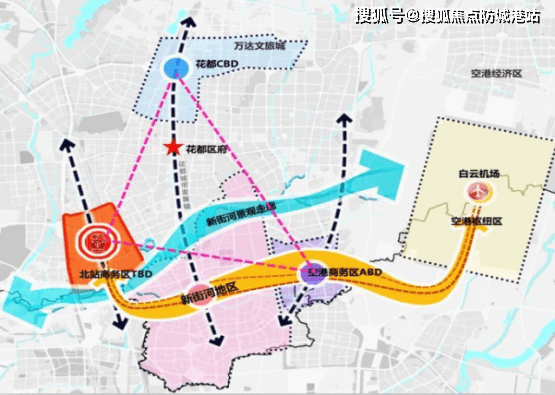 滨水新城是花都面向南面广州主城区的大门,东西两个方向分别是白云国际机场和广州北站,北面距离花都新中轴仅几公里。