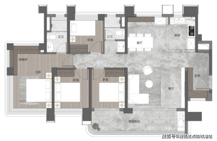 通透四开间朝南|一体化瞰江宽厅|270°全景女王主卧套房