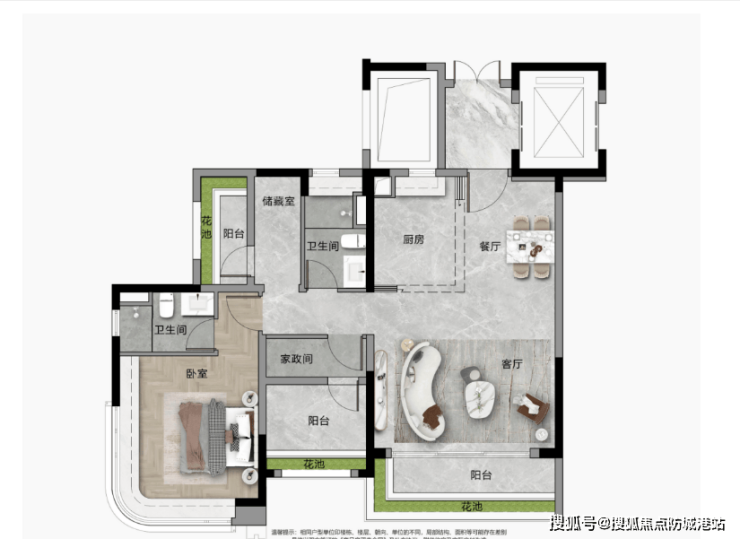 户型特点:全南向、大面宽、高采光 所有户型均为全南向设计,大面宽、短进深,采光通风效果佳,搭配大阳台、转角飘窗,提升居住舒适度。