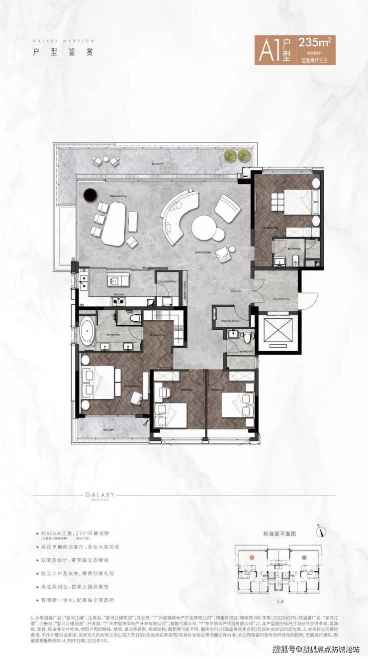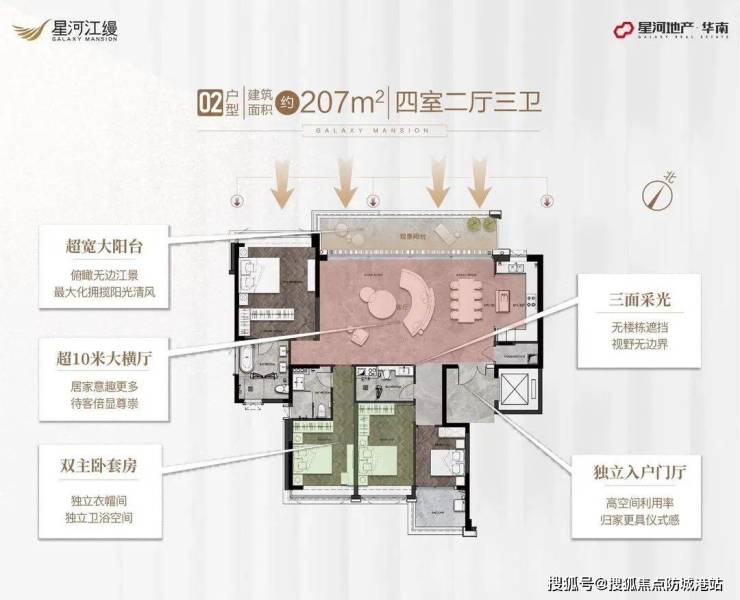 在户型设计上,星河江缦充分考虑到了居住者的实际需求与生活习惯,提供了多样化的户型选择。以179㎡为例,四室两厅三卫的设计不仅保证了空间的宽敞度,同时也注重私密性,适合追求生活品质的家庭。而207㎡和235㎡的户型,则进一步提升了居住体验,无论是家庭聚会还是私人休闲,都能找到合适的空间。每个户型都经过精心布局,确保每一寸空间都被充分利用,同时兼顾了美观与实用性,让每一位业主都能享受到舒适宜人的居住环境。