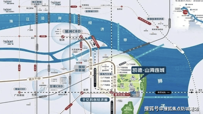 1. **占据城市黄金位置**:凯德·山海连城位于番禺东石楼镇莲花湾板块,虽不是城市中心的绝对黄金位置,但该板块在城市规划中占据重要地位。莲花湾板块对接大湾区高新科创产业,是番禺的产业高地,囊括了番禺一半的产业,如千亿级独角兽广汽埃安等企业汇聚于此。随着产业的发展,区域的经济活力和人口吸引力将不断增强。目前,项目周边的市政配套正在逐步完善,虽然大型商业中心相对缺乏,但小区自身配备了一定的生活设施,能满足居民的基本生活需求。同时,随着板块的发展,后续市政配套有望进一步成熟,居民日常办事、购物、就医等的便捷性也将不断提高。