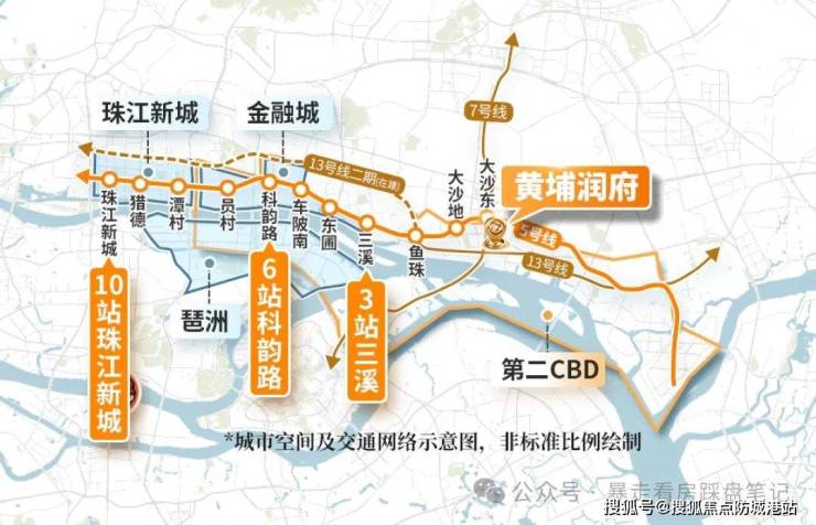 项目拥有双地铁交汇的黄金交通网络,直线距离地铁 5 号线与 7 号线换乘站大沙东站约 350 米,步行约 5 分钟即可到达。5 号线作为广州东进大动脉,串联珠江新城、金融城、黄埔临港经济区三大核心产业区,乘坐 5 号线 3 站可达金融城东区三溪站,6 站可达金融城起步区科韵路站,10 站直达珠江新城站,全程无需换乘。7 号线可快速通达科学城、大学城、万博商务区,3 站到科学城,8 站到万博。13 号线二期预计 2026 年开通,开通后将进一步缩短前往天河核心区的时间。