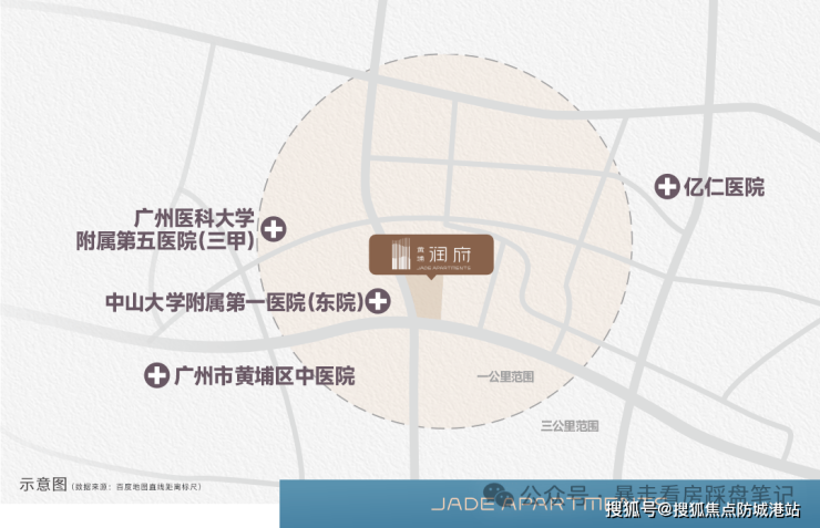 医疗配套方面,项目周边聚集了两家三甲医院,为业主提供全方位的健康保障。直线距离中山大学附属第一医院黄埔院区约 500 米,步行约 7 分钟即可到达,该院是全国知名的综合性三甲医院,综合实力位居全国前列。直线距离广州医科大学附属第五医院约 1.2 公里,步行约 15 分钟即可到达。两家三甲医院形成了完善的医疗服务体系,能够快速响应业主的各类医疗需求,守护业主及家人的身体健康。