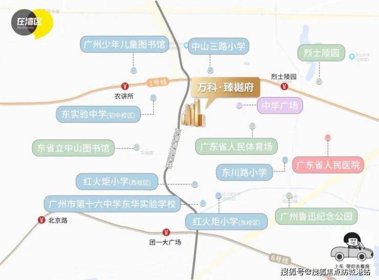 万科·瑧樾府,位于越秀老城区核心腹地,距地铁1号线农讲所约400米,6号线团一大广场站约700米。