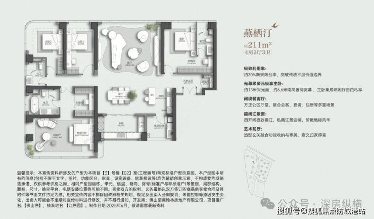 免责声明:本资料中对项目周边环境、配套及交通等图文介绍仅供参考,不构成的任何要约或承诺,最终以政府批准文件、项目实际周边情况为准。本项目的图文资料仅供参考、非要约,具体以交付时现状及买卖合同的约定为准。本公司保留修改宣传资料的权利,敬请留意项目最新资料,最终的解释权归本公司所有。 招商佛山序开发商售楼部热线400-990-8525转333