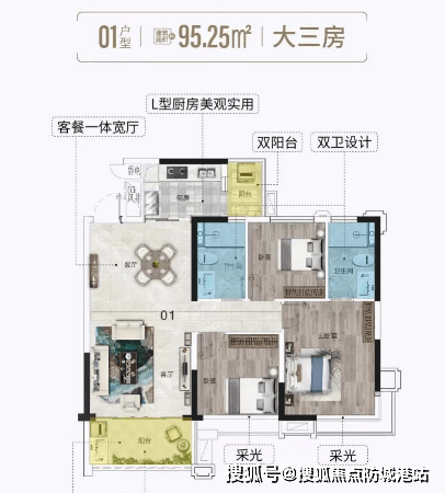▌89㎡三房:南北对流+10米采光面,用刚需预算收藏稀缺江景