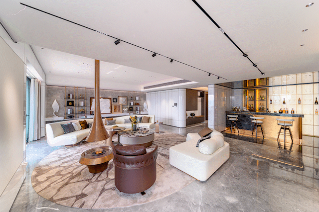 同时,这个户型的公共活动空间具备极高的灵活改造性,客厅旁边的功能房,可以根据家庭的需求,与客厅打通,形成一个超大尺度的方厅,拓展公共活动空间,打造家庭影院、亲子活动区、开放式书房等多元化的空间;也可以保留独立的空间,作为书房、健身房、茶室、客房,或者是儿童活动室,能够完全适配家庭不同成长阶段的需求,随着家庭结构的变化,灵活调整空间的使用功能。