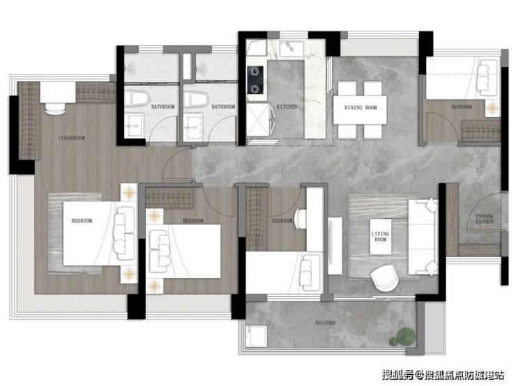 86㎡户型:升级大阳台设计,客厅与次卧连通,打造开阔视野。