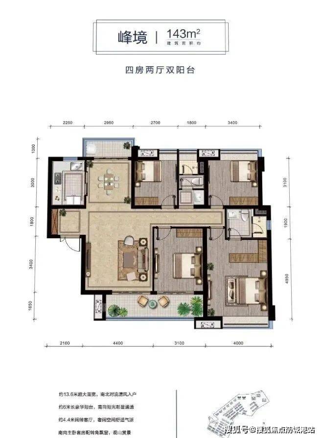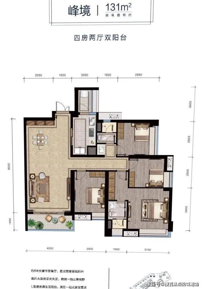 其建面约131-143㎡大平层四房 户型采用全南朝向,且这远优于市场上普通的阳台朝南。