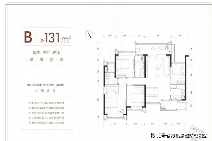 ✅ B户型:双阳台(景观+生活) + 4米客厅开间 + L型全明厨房;