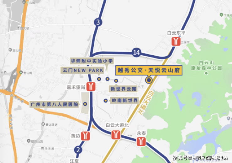 交通是城市的血脉,也是衡量一个楼盘价值的重要指标。虽然越秀·天悦云山府距离最近的地铁站——14号线白云东平站约1.7公里,距离3号线白云大道北站约2.1公里,看似稍远,但项目独创的“公交TOD”模式彻底打破了这一局限,构建了高效便捷的立体交通网络。项目门口打造了首个全新的公交TOD枢纽,业主可以从小区乘坐电梯直达楼下的阳光公交站场,实现无缝接驳。通过公交线路,居民可以快速换乘地铁2号线、3号线、14号线(二期在建)以及18号线北延段(在建),轻松抵达珠江新城、体育西等核心商圈。这种“下楼即上车,到站即归家”的模式,完美解决了回家最后一公里的痛点,让公共交通出行变得比自驾更加便捷高效。