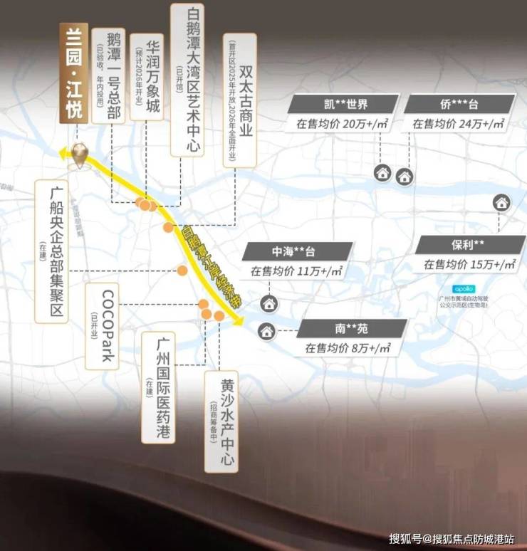 项目傲居白鹅潭CBD,便捷交通路网,500米地铁站。白鹅潭定位“广州西翼CBD”,对标纽约、芝加哥、东京等世界级中央商务区,以200万平方米体量晋升广州5大世界级商圈之首。
