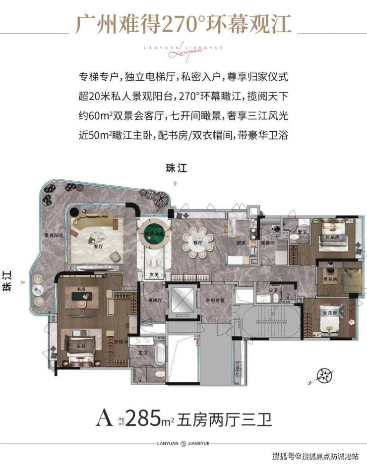 项目规划低密度18层,一梯一户,270°全景视野,拥享三面环江震撼景观。开平式隐形门、 总统套房奢阔尺度,兼顾舒适与私密的双重考究,筑就安逸从容的心灵居所。