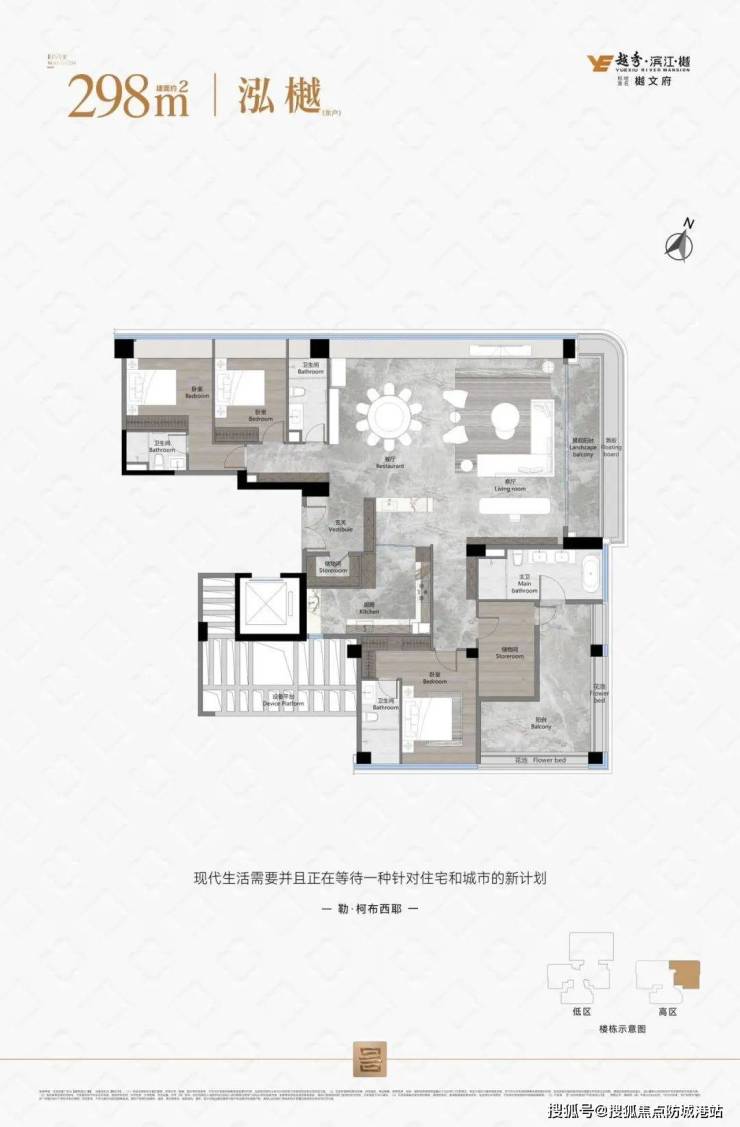 298㎡澄樾户型:独立的四套房间,配备中西厨房,适合两代人共同居住,打造顶级私密空间。