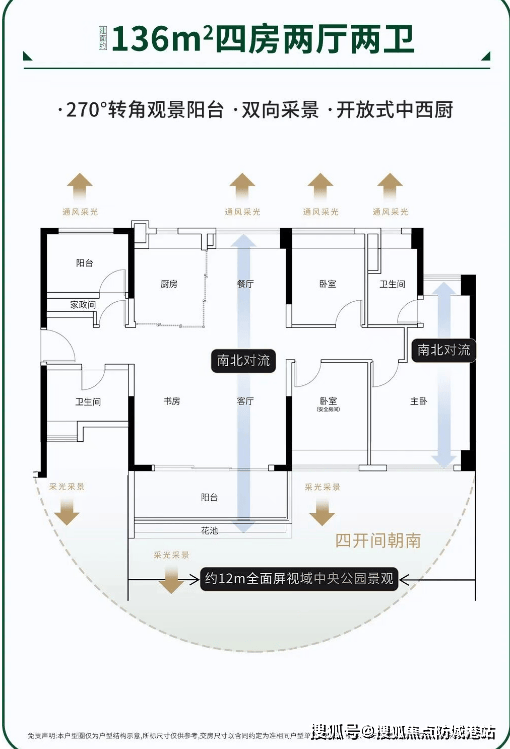 项目首期仅480户,主打改善型四房产品,虽未明确列出具体面积段,但从“T2/T3专梯布局、板式小高层、面向280米园林景观面”等描述可见,户型尺度开阔,注重采光、通风与景观视野。