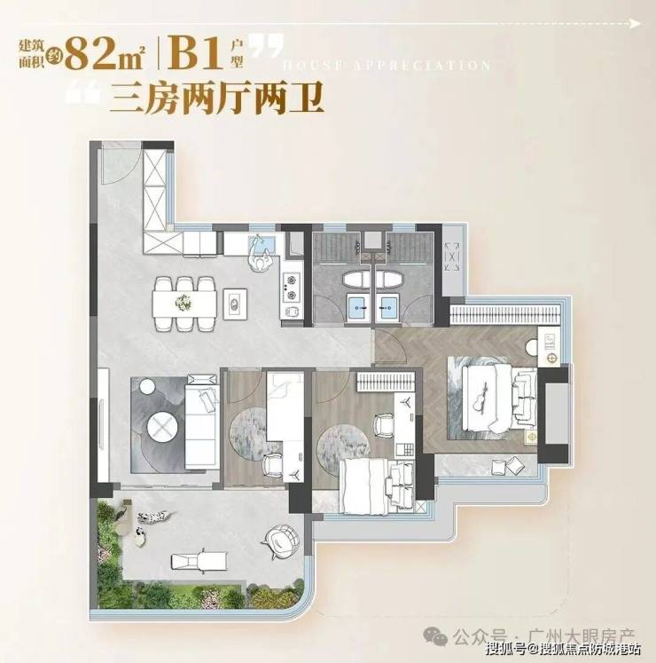 项目主打“小面积、大享受”的产品理念,户型区间覆盖82–125㎡三至四房,适配不同家庭的居住需求。以常见的82㎡户型为例,传统住宅82㎡套内使用面积通常不足70㎡,而招商林屿境的82㎡户型,使用率可接近130%,实际可用空间远超同面积传统户型。传统85㎡户型多设计为小三房一卫,而该项目82㎡户型可做到3+1房,额外增加的空间可作为书房、儿童房或储物间,满足家庭不同阶段的需求,也让房屋在未来的二手市场中具备更强的竞争力。