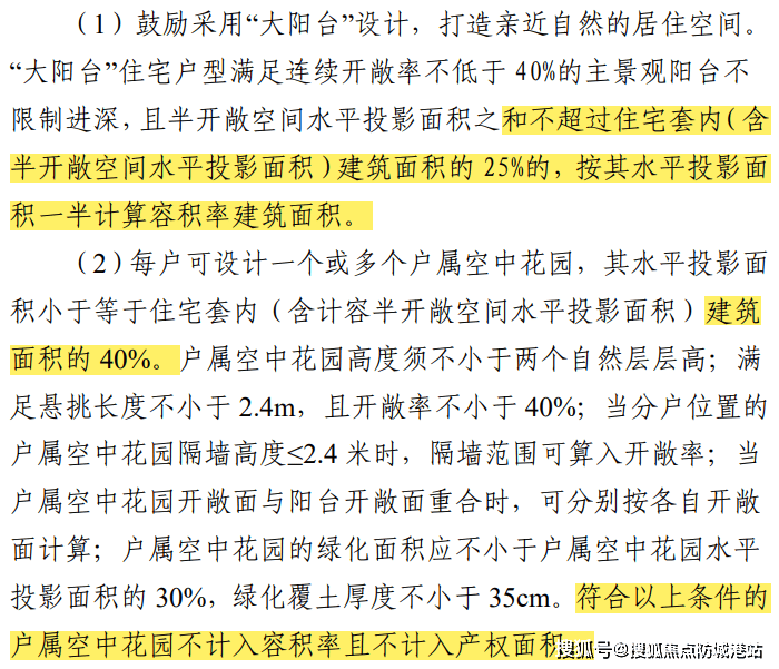 招商林屿境的核心产品优势,源于地块的“超新规”规划条件,这也是其作为广州第四代住宅试点的核心体现。根据官方出让文件,该地块鼓励开发商采用“大阳台”设计,半开敞空间水平投影面积之和占住宅套内面积的比例可达25%,较此前20%的标准更为宽松,且这部分面积仅计一半计容建面;同时,每户可设计一个或多个户属空中花园,面积不超过套内建面40%的部分,不计入产权面积,相当于免费赠送。