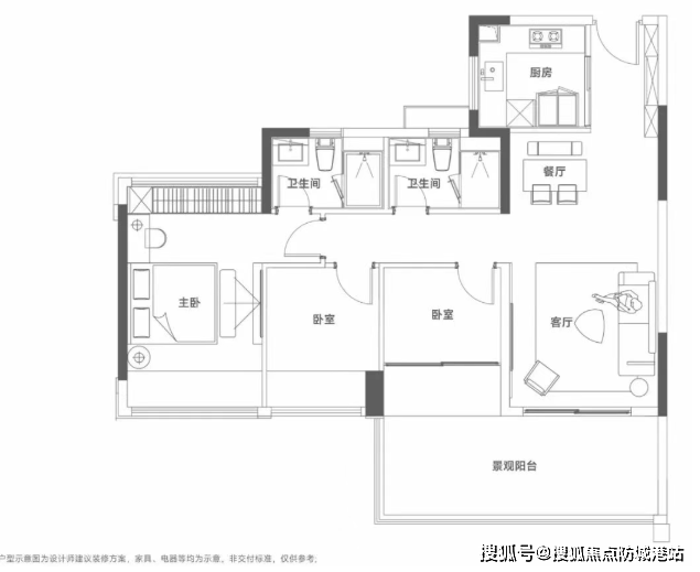 此户型强调南北对流,可看河、看园、看山,三景合一。约7米大阳台,视野更加开阔。南北通透的格局,让清风与阳光自由穿梭。功能分区明确,动静分离,居住舒适度高。