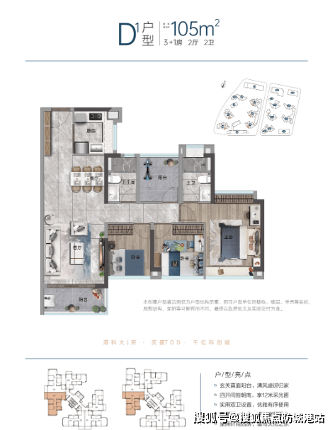 招商湾区1872目前主推面积段为79-105平方米的三至四房户型,使用率可达90%-94%,使得每平方米空间得到高效利用。其中,79平方米的户型虽然面积不大,但巧妙的设计使其具备了三房两卫的功能,非常适合刚需家庭选择。
