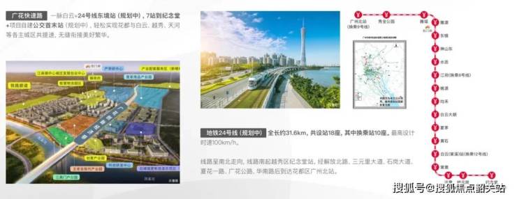 地铁:已开通的9号线花都广场站距项目1.5公里,规划中的24号线(广州北站-纪念堂)将在项目周边设站;