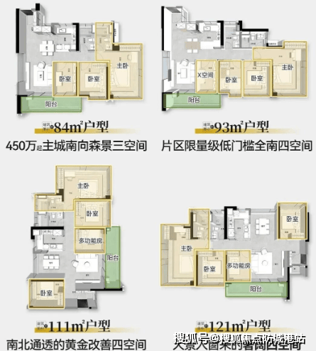 主力户型集中在88㎡到117㎡之间,全部为南向布局。88㎡三房配5.4米景观阳台,主卧U型环幕设计,三个房间都能享受晓港公园视野;93㎡四房更绝,四个空间全部朝南,客厅可横可竖,灵活改造空间大;117㎡则做到南向14.7米面宽,LDKB一体化方厅搭配6.1米阳台,南北对流效果明显。值得一提的是,所有户型窗户均采用2–4层中空玻璃(高区为夹胶),窄框幕墙设计不仅视野开阔,隔音也比普通住宅强不少。