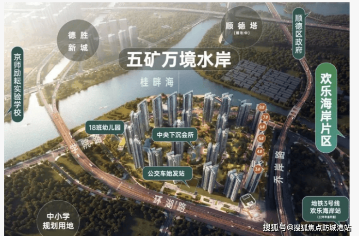项目雄踞顺德大良东区——桂畔海滨江豪宅集群的核心腹地,是板块内唯一南向望江的纯住宅地块。地块形如游轮船首,独占约300米桂畔海一线江岸线,高区可远眺三江交汇盛景,南望顺峰山、东瞰欢乐海岸摩天轮,城市地标尽收眼底。在顺德主城土地供应趋紧、滨江住宅日益稀缺的背景下,此类集“南向江景+山景+地标视野”于一体的绝版资源,已成不可复制的城市封面资产,具备极强的收藏价值与抗周期属性。