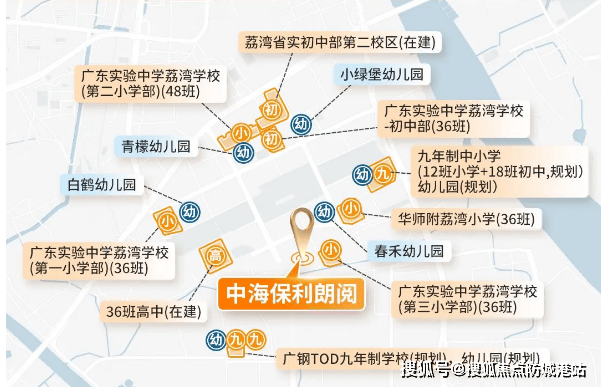 除了省实三小,项目周边的教育集群更是令人咋舌。周边分布着省实一小、省实二小、华师附小等多所名校,形成了一个庞大的“省实系”教育版图。这些学校之间资源共享、师资互通,共同构建了高质量的基础教育体系。更重要的是,项目自身还配建了两所学校,一所是36班的初中,另一所是36班的高中。其中,初中已被确定为省级名校——广东省实验初中,预计2025年竣工。这意味着,从小学到高中,孩子在中海保利·朗阅周边可以完成一站式的全龄段教育,无需在不同学校之间奔波,极大地节省了时间和精力。