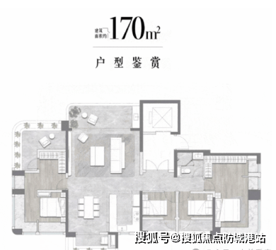 168-170㎡四房:主力户型之一,经典竖厅设计,客厅开间达4.2米,双卫配置,兼顾私密与共享,完美适配三代同堂。