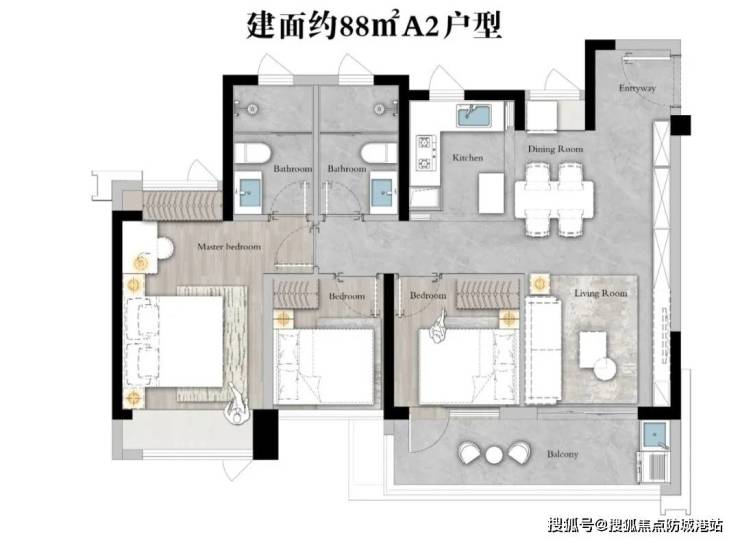 以建筑面积约 88 平方米的户型为例,该户型创新性地配备了超 11 米长的南向四开间,实现南北对流,搭配 “LDKB 客厅” 设计,让公共活动空间更加开阔通透。景观阳台长达约 5.4 米,尺度阔绰,可在此品茶赏景,享受悠闲时光;主卧配置了 270° 转角环幕飘窗,带来极佳的采光视野,让业主仿佛与自然亲密相拥,尽情享受阳光与美景。而建筑面积约 98 平方米、108 平方米的四房户型,则在前者的基础上进行了空间扩容与优化升级,做到了五开间朝南,空间布局更加合理,居住舒适度进一步提升,满足家庭成员较多的家庭对空间的更高需求。全屋采用高品质精装交付,精选国内外一线品牌建材与家居,从地板到天花板,从厨房电器到卫浴设施,每一个细节都彰显着品质与格调,为业主呈现出一个精致、舒适的品质家。