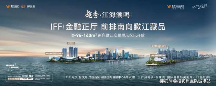 您好!感谢您关注央企越秀地产打造的南沙横沥岛尖封面之作 ——南沙区越秀江海潮鸣。作为深耕广州 30 余载的本土龙头房企,越秀地产始终以 “建筑美好生活” 为使命,为城市筑就品质人居标杆。本项目坐落于明珠湾国际金融岛尖南岸、IFF 会址旁,是区域内稀缺的南向一线江景现房,亲江仅约 60 米,坐拥约 7.8 公里滨江景观带,将江风与绿意融入日常生活。
