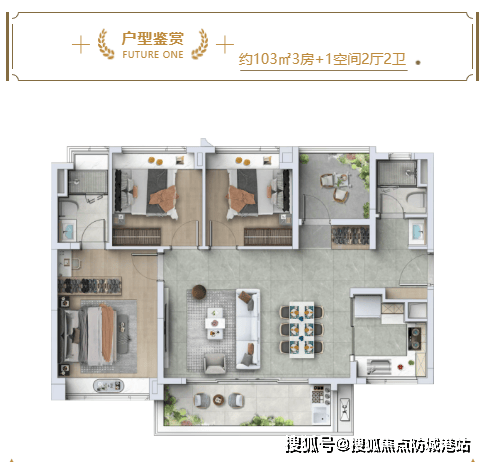 约103㎡ 3房+1空间:宽敞明亮,是成长型家庭的理想之选。