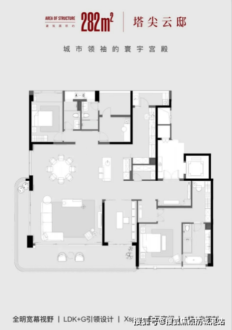 户型设计:提供从约278平方米到370平方米的大平层户型,每个户型都经过精心设计,旨在满足高端圈层的生活品味和需求。