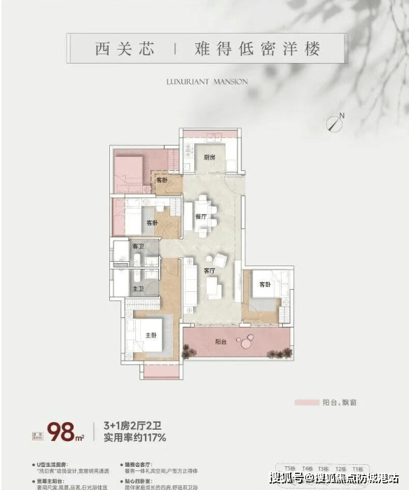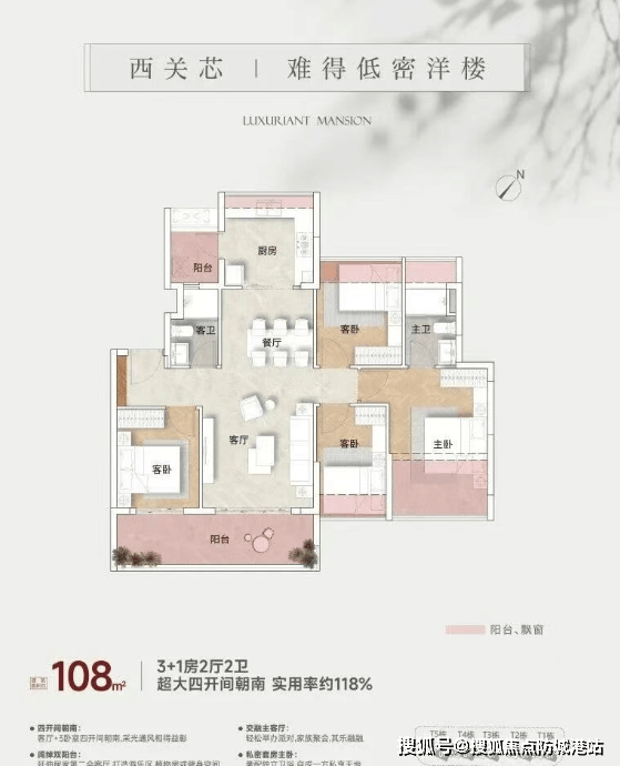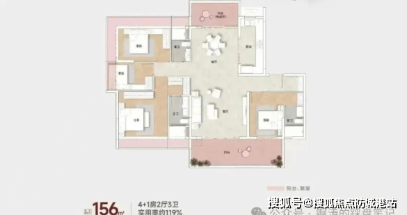 更令人惊喜的是其极致的空间利用率。三个主力户型——98㎡、108㎡、156㎡,全部为四房格局,并通过创新结构设计,实现超110%的使用率,部分户型甚至达到117%。这意味着,98㎡可灵活改造为“3+1房2厅2卫”,满足二胎家庭或三代同堂的多元需求;108㎡做到四开间朝南,三间卧室均为南向,主卧独占东南单边位,采光通风优势显著;而156㎡作为楼王产品,仅9套稀缺货量,采用双套房+南北双阳台设计,可拓展为“4+1房2厅3卫”,轻松应对三胎家庭或高端改善客群对私密性与功能性的双重诉求。