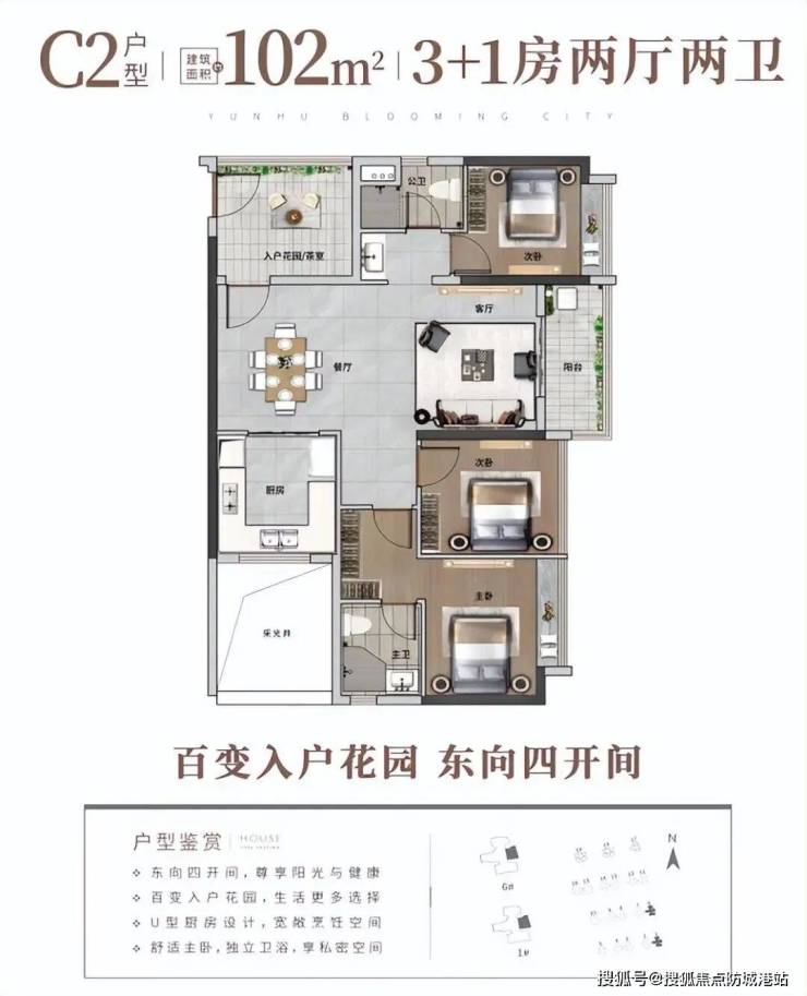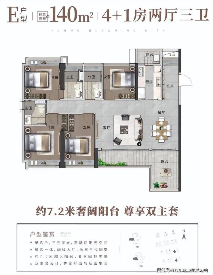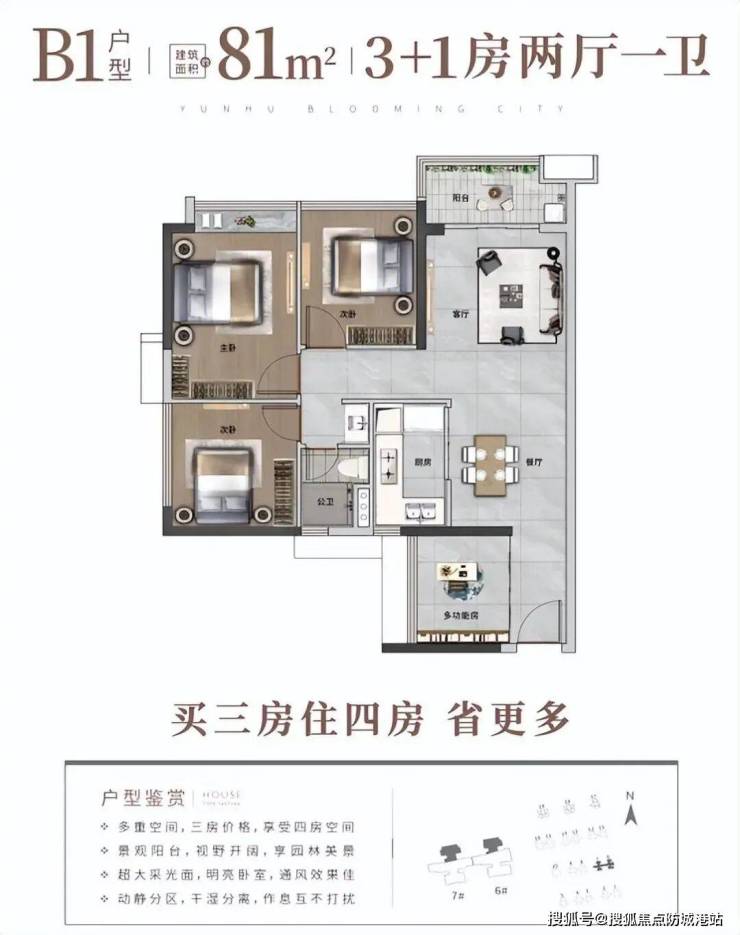 高性价比的全龄段人居N+1户型,户型涵盖约70-140㎡三-六房。