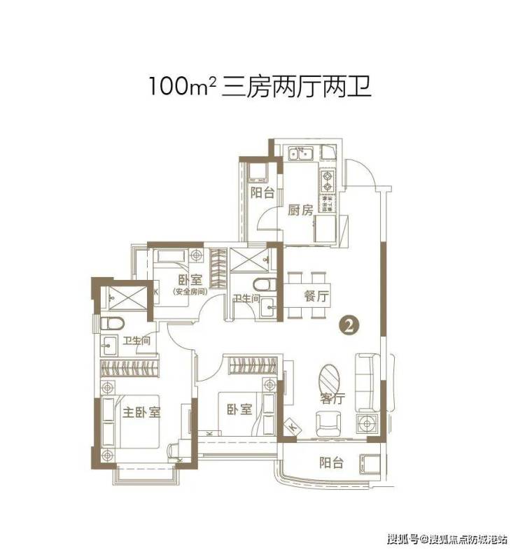 建筑面积约100㎡的三房两厅两卫
