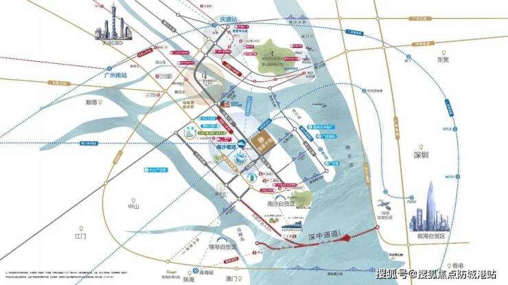 绿城·蓝湾半岛坐落于南沙枢纽板块,该区域是《南沙方案》确立的三个先行启动区之一,具有巨大的发展潜力。项目紧邻地铁18号线和深中通道,这使得居民能够便捷地通达粤港澳大湾区的主要城市,极大地提升了生活的便利性。