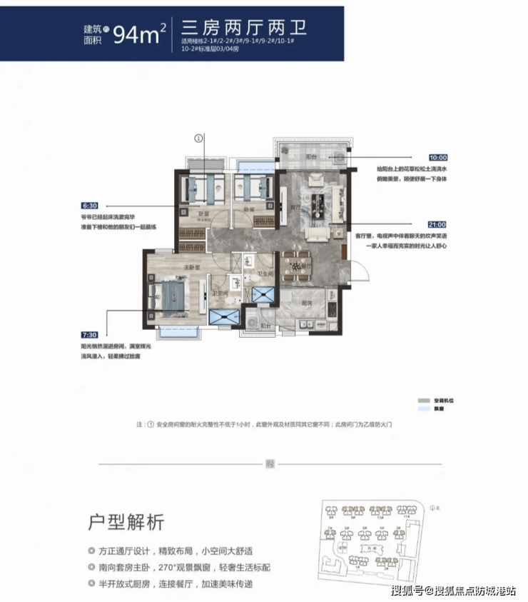 视野开阔:南向套房主卧,270°观景飘窗。