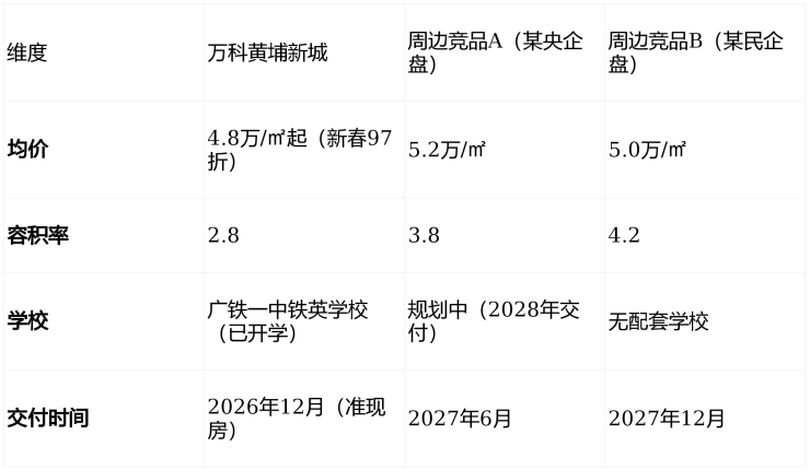 2025年12月,老黄埔一宗地块以42,300元/㎡楼面价成交,溢价率达28%。该地块容积率4.5,且需配建5%公租房。对比之下,万科黄埔新城容积率仅2.8,且无任何配建要求,土地成本优势显著。