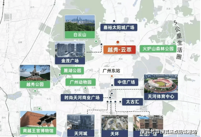 越秀云萃西侧紧邻白云山,几乎无遮挡,推窗即可享受绿意盎然的自然景观。步行至白云山脚下也十分方便。此外,项目周边有广垦天河壹号、信达金茂广场等大型购物中心,满足日常生活所需。加上附近的南方医院、省妇幼保健院等优质医疗资源,进一步提升了生活便利性。更值得一提的是,中轴位置的优势让其可以直接将天河北、天河路商圈作为配套设施,无论是购物还是休闲娱乐都极为方便。